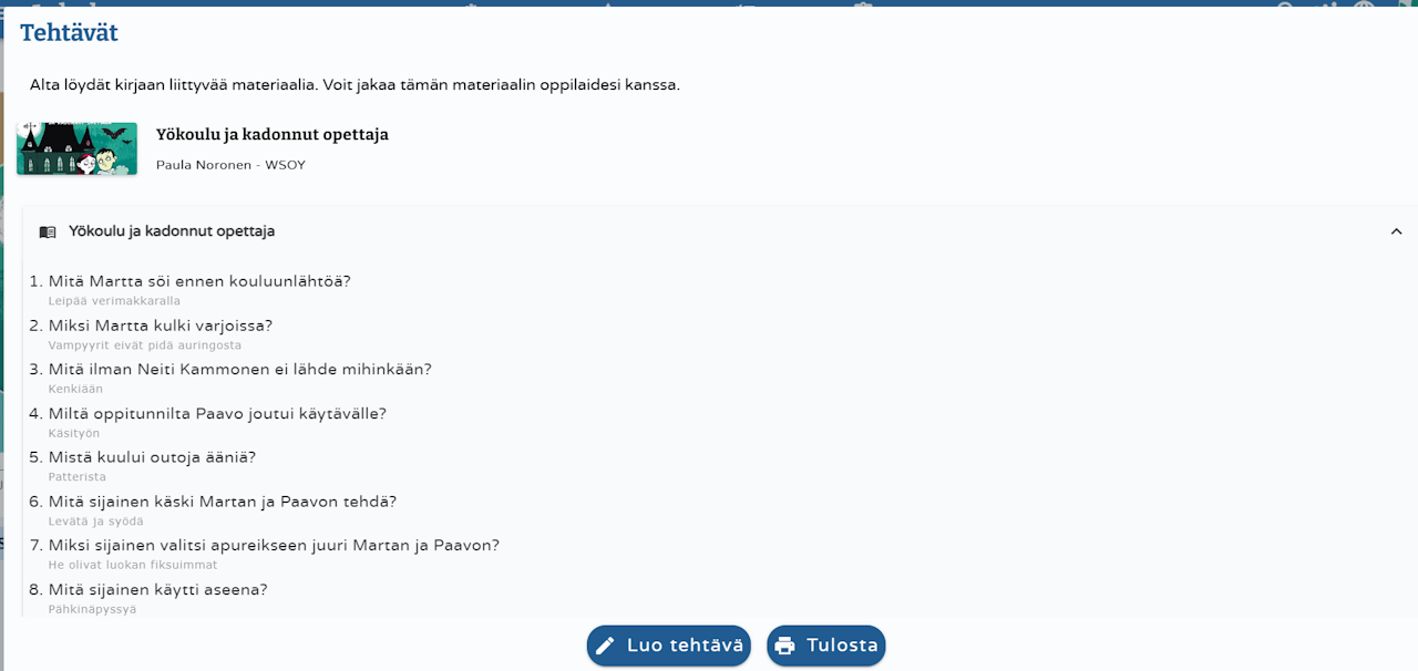 Luetunymmärtämistehtävät ovat kirjakohtaisia kysymyksiä, joita löydät osasta kirjoistamme.