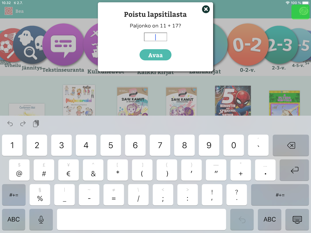 Klikkaa oikeasta yläkulmasta löytyvää lapsitilan symbolia (lapsen kuva jonka päällä viiva). Näkymään avautuu laskutehtävä jonka ratkaisemalla saat otettua lapsitilan pois päältä.