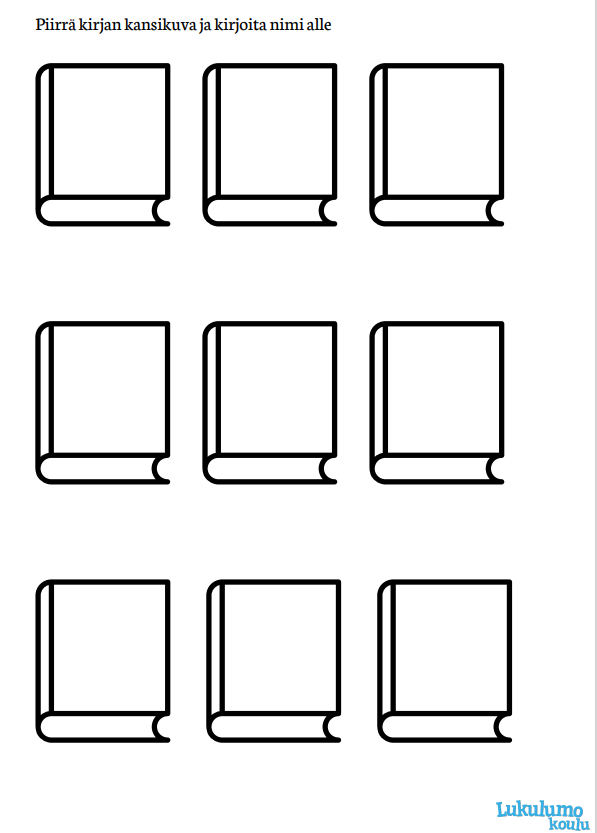 sivulla tyhjiä kirjankansia, joihin oppilas voi piirtää lukemansa kirjan kansikuvan.