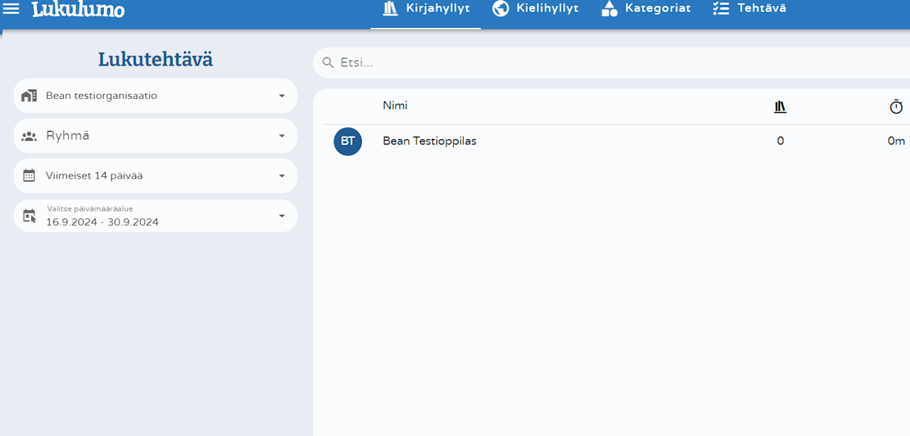 HUOM! Ominaisuus vaatii, että oppilailla on koulussa käytössä omat tunnukset ja että oppilas on kerran kirjautunut Lukulumoon sisälle.